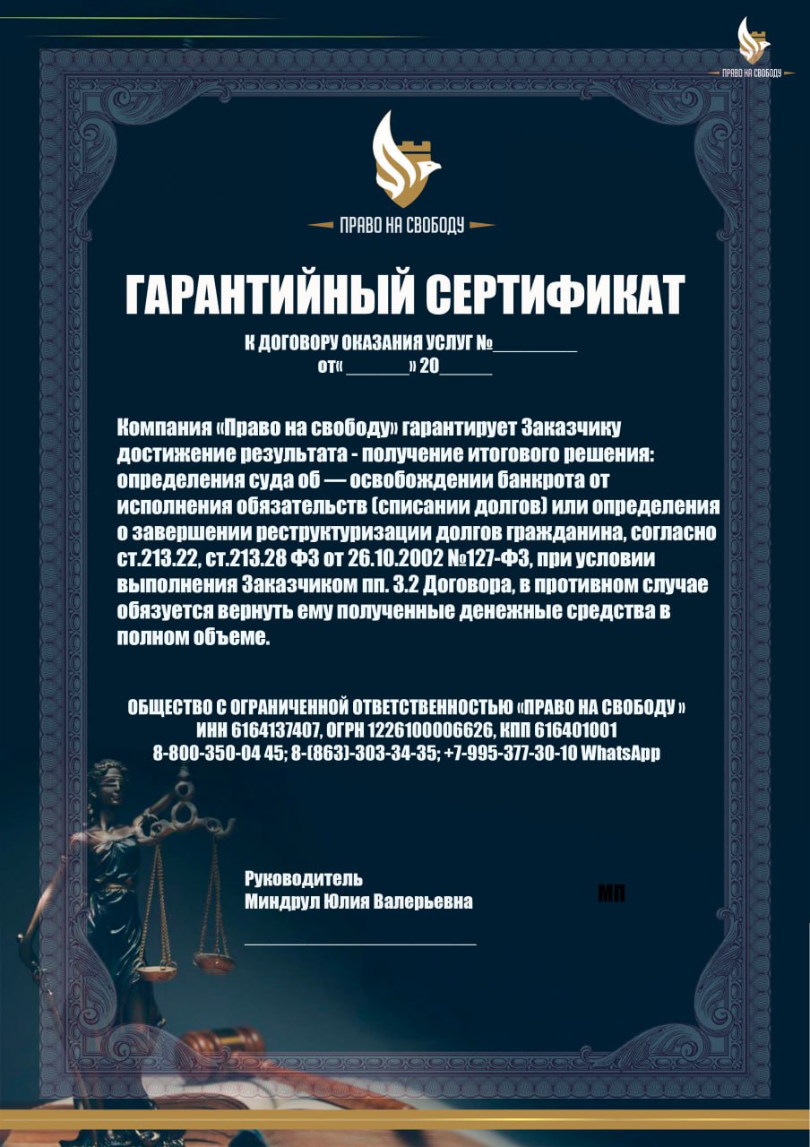 Банкротство физ лиц списать долги Гарантия БФЛ отзыв Право на свободу